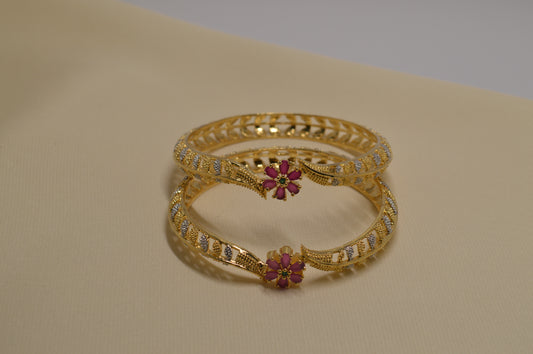 1 caret Gold Plated Ruby Zircon Bangles Pair