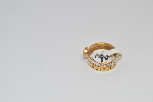 18K Gold Plated Double Row Adjustable Ring with Stones