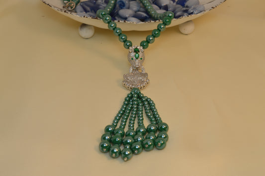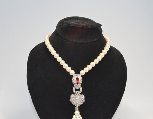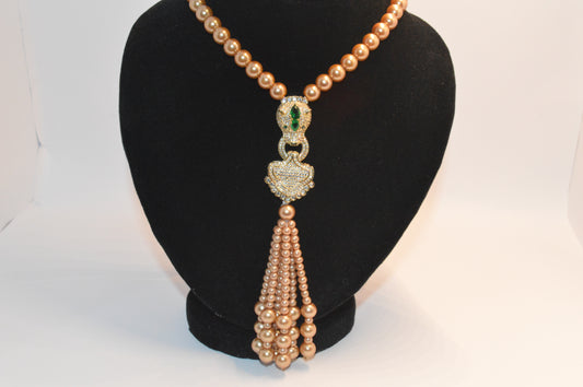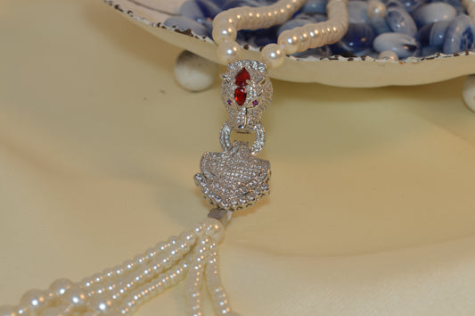 Elegant Panther Head Pendant Necklace with Artificial Pearl Mala