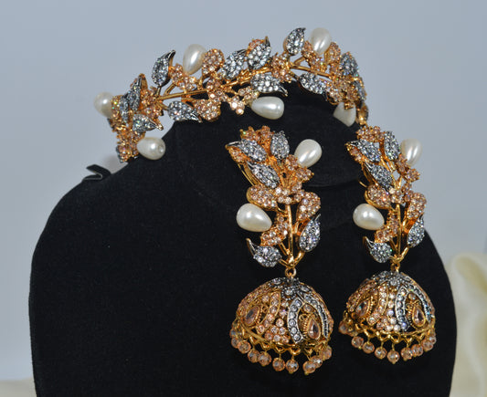 Luxury Gold Bridal Choker Set with Pearl Mala