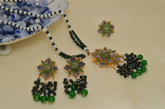 Gold & Silver Dual-Tone Mala Set with Earrings Ring