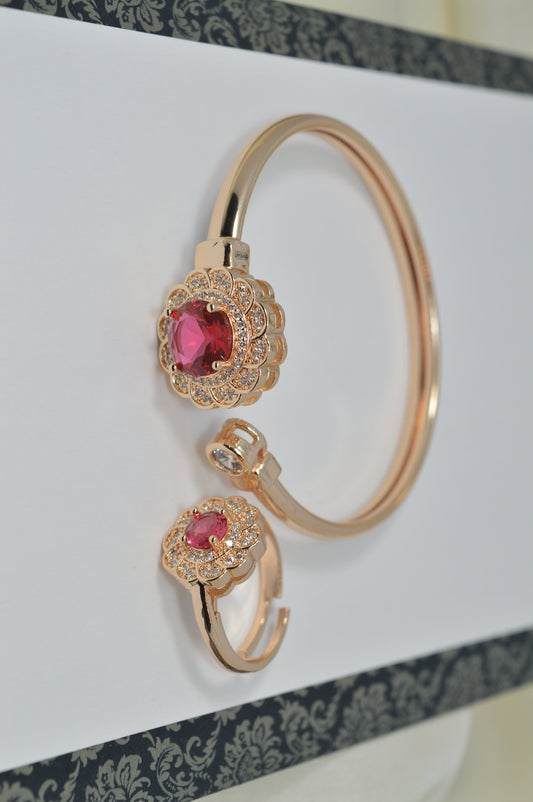 Trendy Luxury Bracelet with Brilliant Cubic Zirconia & Ring