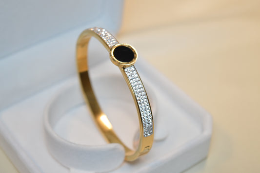 Elegant Stainless Steel Bracelet with Black Stone & Sparkling Zircon (BT-23)