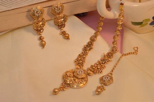 Luxury Gold Bridal Choker Set with Pearl Mala