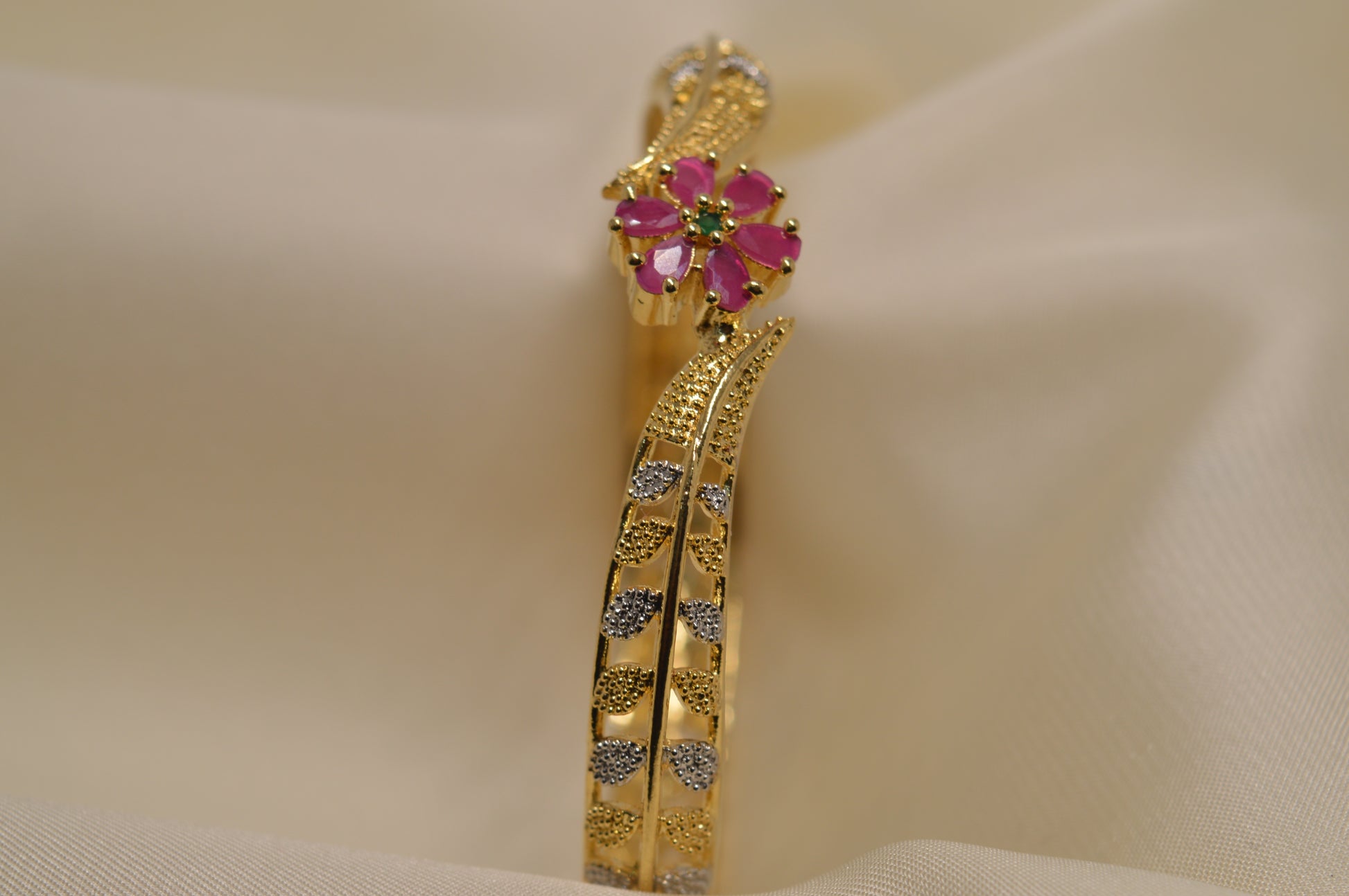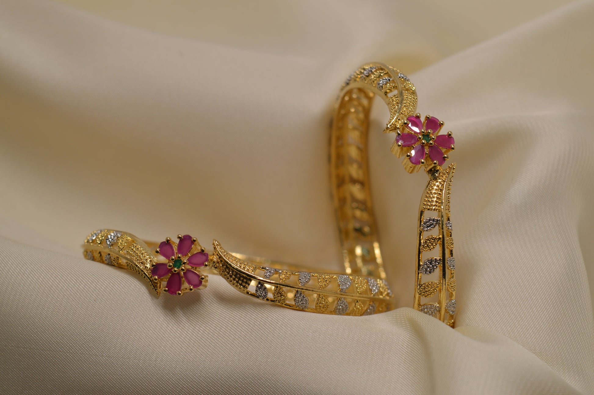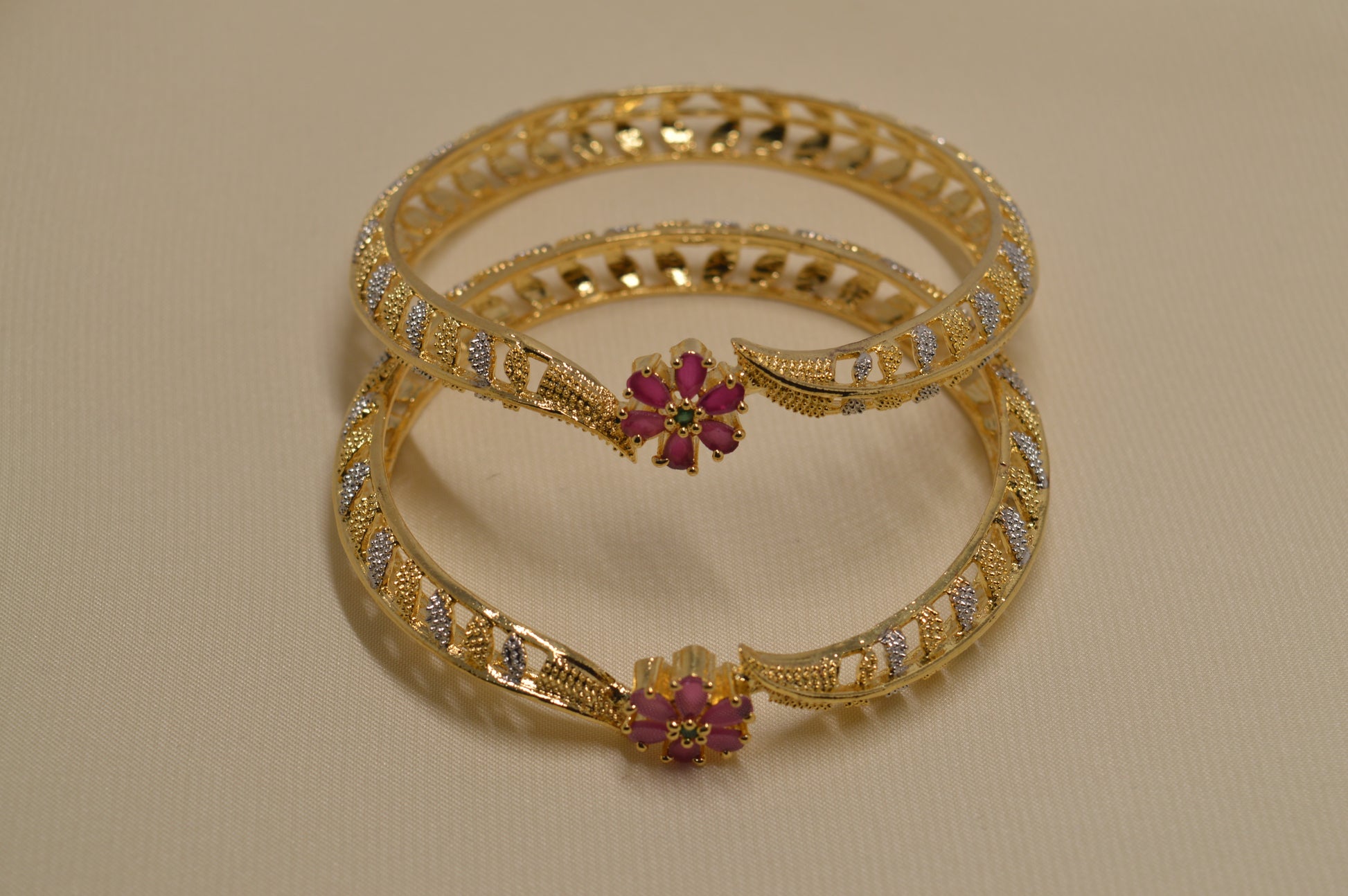 1 caret Gold Plated Ruby Zircon Bangles Pair