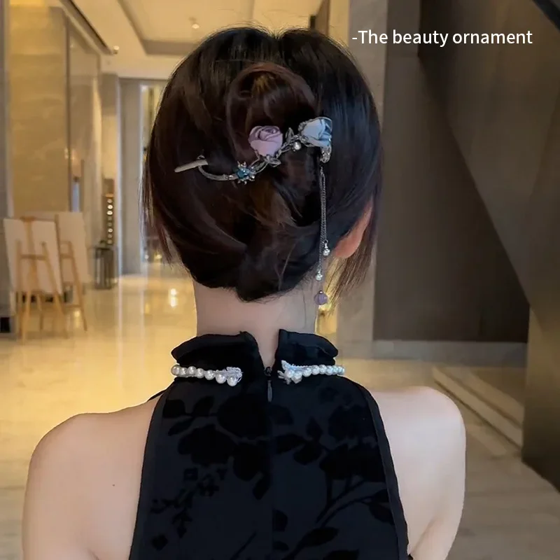 🌹 Elegant Rose Alloy Hair Clip – High-End Professional Salon Hair Division & Fixation Tool