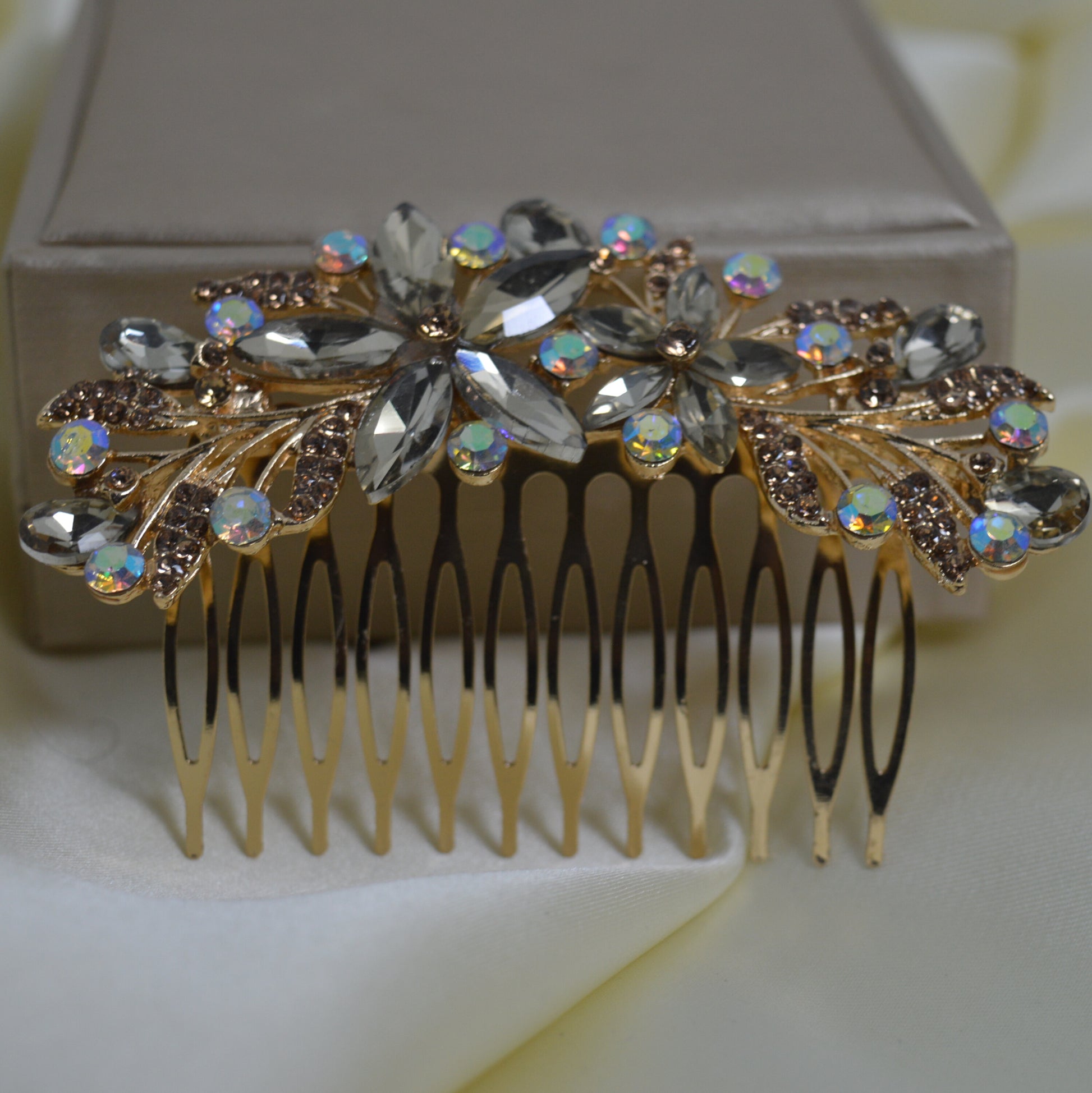Handmade Headwear Pearl Alloy Leaf Hair Comb (HC-37)
